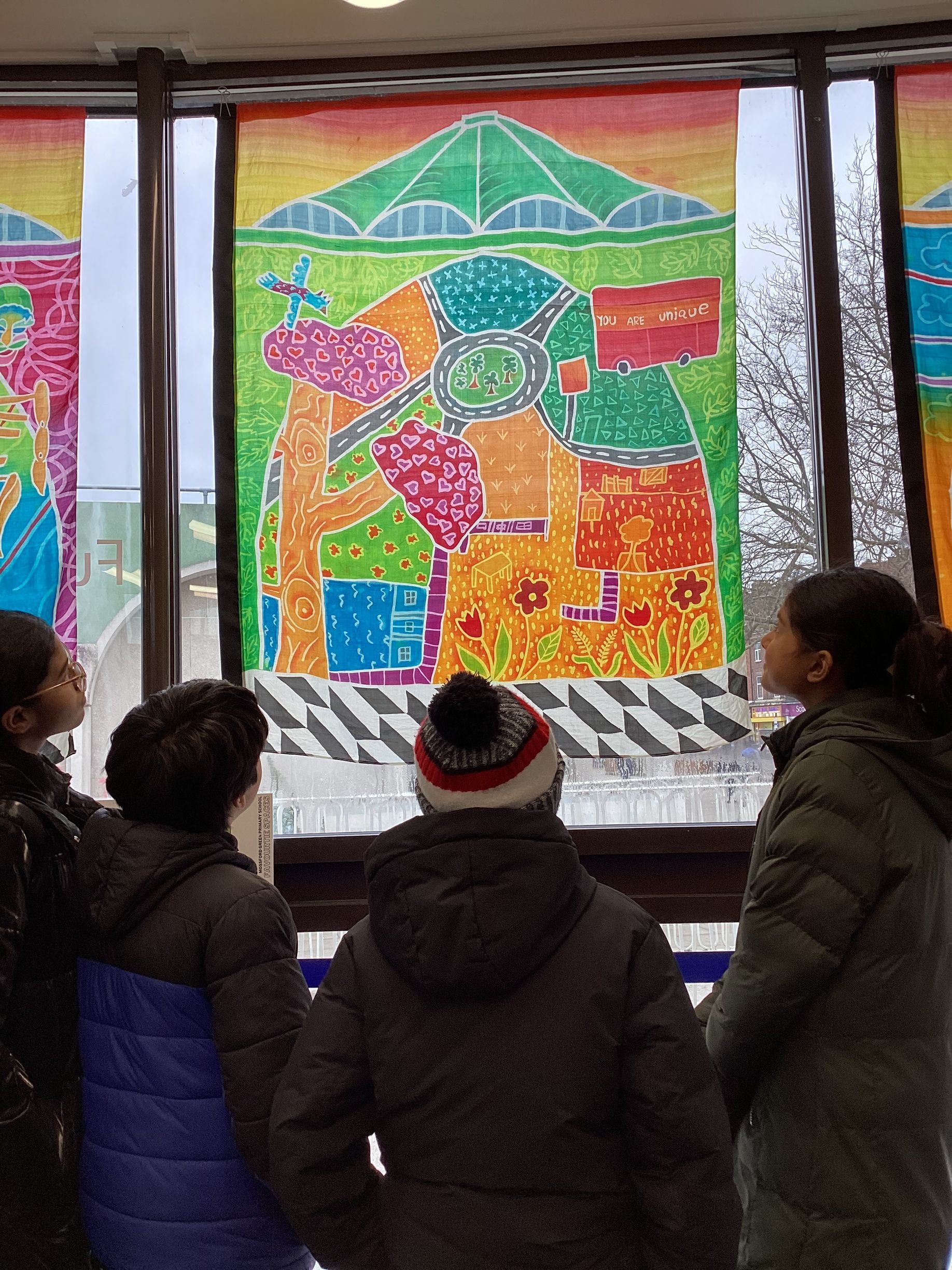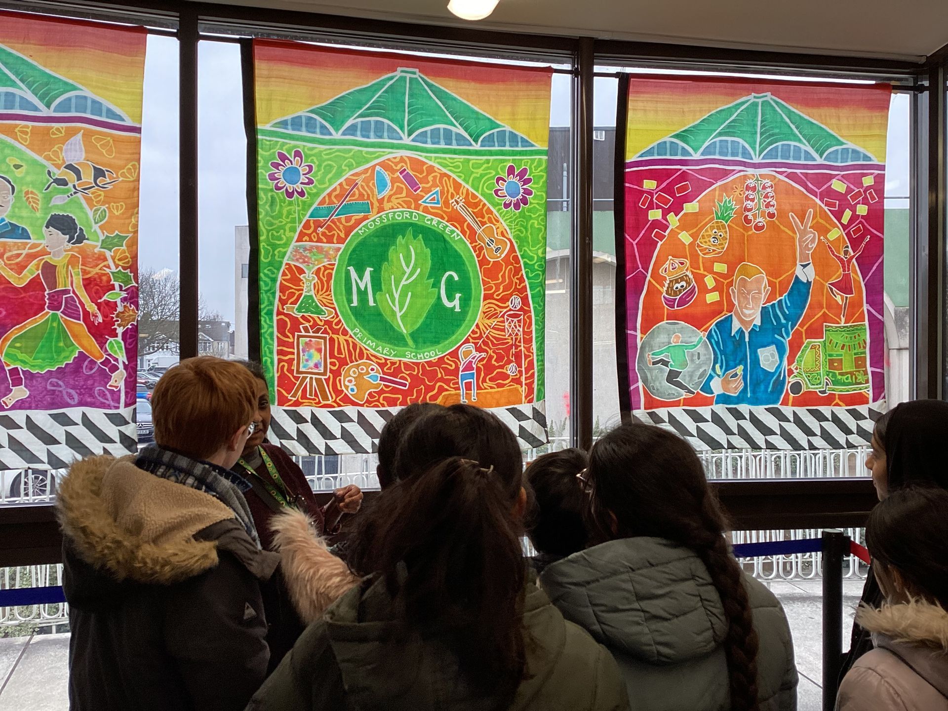 We were very grateful to be a part of an arts and heritage project run by Vision's culture and Library development team. We were lucky to design two of the flags that will be used across many different events run by the Vision team and it was so exciting for our children to see themselves as "published" artists at the opening exhibition.